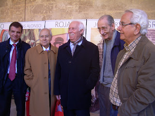 A continuación se procedió a la entrega de placas como homenaje a los autores veteranos, otorgadas por la Asociación Valenciana del Comic en distinción a toda una vida dedicada a los tebeos. Gonzalo Torres como presidente de la Asociación fue el encargado de entregar las placas conmemorativas a José Ortiz, Arturo Rojas de la Cámara, Miguel Quesada, Alberto Marcet, Zesar, Enrique Cerdán (recogido por Jose Mª "Che" Varona al no poder asistir el autor), y a los familiares de los recientemente fallecidos José Lanzon y Emilio Frejo, un acto que resultó entrañable. En la foto superior vemos al hijo de Frejo, Marcet, Rojas, Quesada y Ortiz, de izquierda a derecha.
