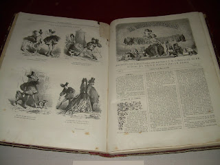 La muestra comienza por los antecedentes del tebeo valenciano, como estas imagenes de 1864 de la revista satírica Mundo Literario pertenecientes a "Viaje por el país del Amor" de Salustiano Asenjo, considerada la primera historieta valenciana.